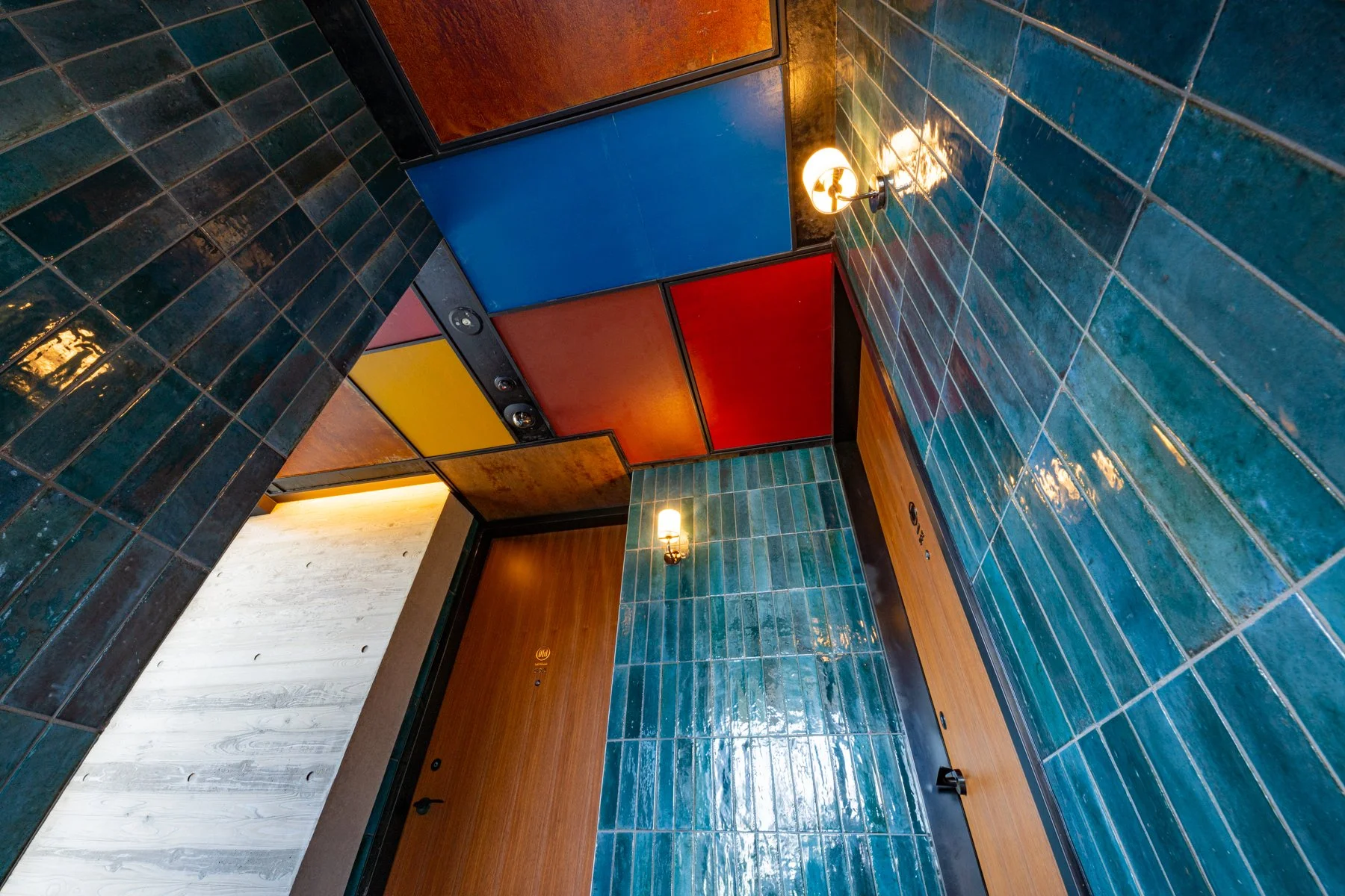 堀木氏とのコラボレーションにより、ロビーの窓には特注の大型和紙パネルを建築の一部として組み込むことで外観と内装の間に見事な効果を生み出しました。昼、夜、晴れ、曇りの日、光の強さや方向が異なるたびに外観は変化し、内部空間は様々な雰囲気を味わうことができます。